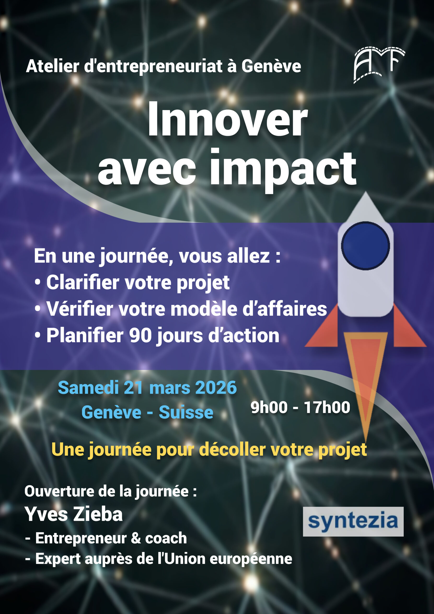 Le samedi 21 mars 2026 à Genève, prenez enfin un temps structuré pour travailler sur votre projet d’entreprise à impact et construire un plan concret sur 90 jours, entouré d’autres entrepreneurs et de coachs.